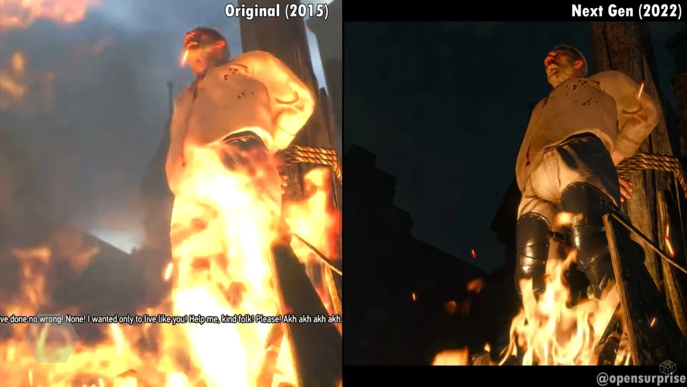 Компания CD Projekt RED вечером 23 ноября провела стрим, посвящённый некст-ген версии «Ведьмака 3». Теперь на YouTube-канале Open Surprise вышло видео, в котором сравнили обновлённую версию игры и оригинал 2015 года выпуска.