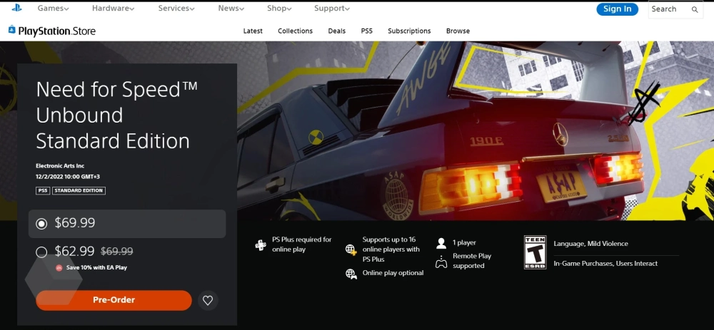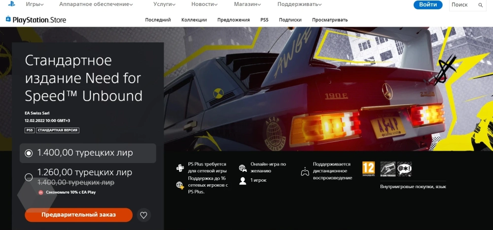 Пользователи обратили внимание, что Need for Speed Unbound, которая выйдет 2 декабря, в турецких PS Store и Xbox Store стоит 1400 лир (~4500 рублей).