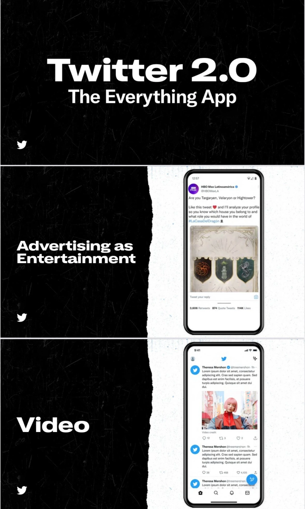 Илон Маск поделился несколькими страницами презентации, которая сопровождала его на корпоративном выступлении в Twitter. Благодаря этому стали известны некоторые нововведения, объединённые концепцией «Twitter 2.0» или «Приложение для всего».