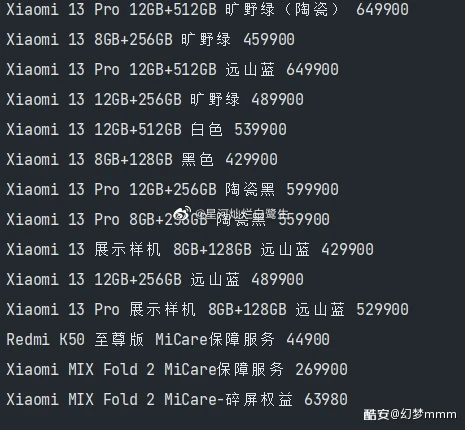 Утечка: стоимость Xiaomi 13 и 13 Pro