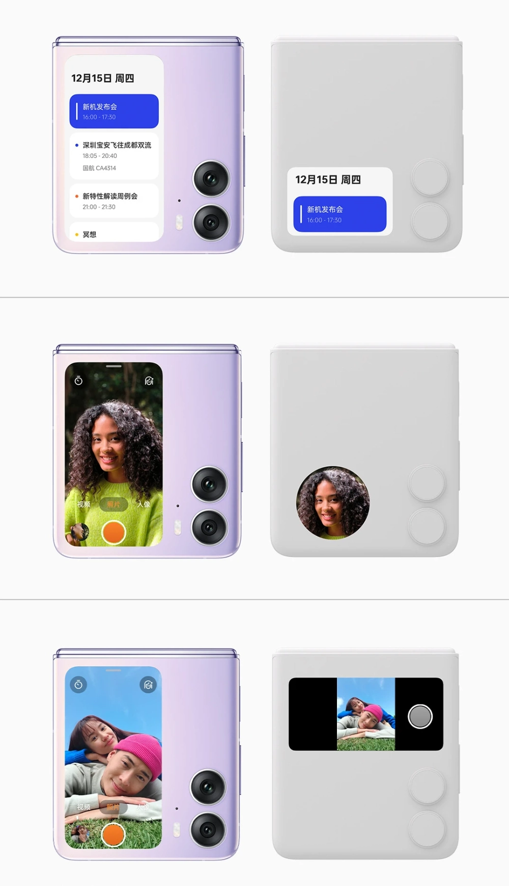 Телефон получил внешний 3,62-дюймовый экран OLED с соотношением сторон 16:9, разрешением 720×382 пикселей и частотой обновления 60 Гц. Основная панель — AMOLED LTPO, 6,8 дюйма, до 120 Гц, 2520×1080, 1600 нит. Есть фронтальная камера на 32 Мп. На тыльной части пара сенсоров: 50 (Sony IMX890) и 8 Мп (Sony IMX355). Чип MariSilicon X — на месте.