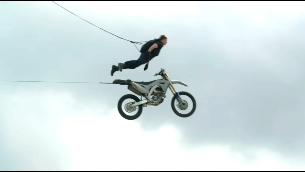 Paramount Pictures выпустила десятиминутное видео, которое раскрывает процесс подготовки и съёмки «самого грандиозного трюка в истории кино» — прыжка Тома Круза с горы на мотоцикле. Эта сцена войдёт в фильм «Миссия: невыполнима. Смертельная расплата. Часть 1».