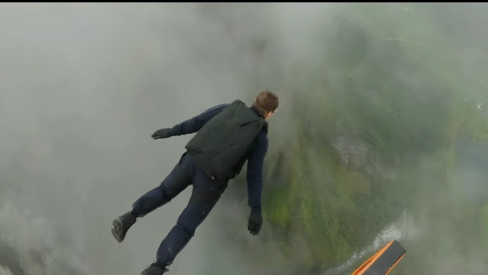 Для оттачивания финального трюка команда фильма построила специальный трамплин, рассчитав её угол на компьютерной модели, чтобы добиться нужной траектории полёта. На 60-летнем актёре закрепили GPS-датчик, чтобы оценить его положение в каждую секунду полёта, и выяснить наилучшее расположение камер. А чтобы понять, когда стоит раскрыть парашют, Круз несколько раз прыгал из примерно одной и той же точки с вертолёта.
