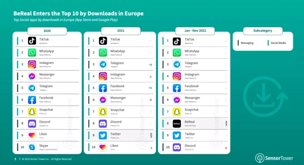 В Sensor Tower подчеркнули, что за последние несколько лет приложения, ориентированные на конфиденциальность, были одними из самых быстрорастущих мессенджеров. Telegram показал наибольший рост среди мессенджеров, особенно в России, Турции и Франции. Telegram также занял третье место в топе самых скачиваемых приложений (не только мессенджеров) в Европе.