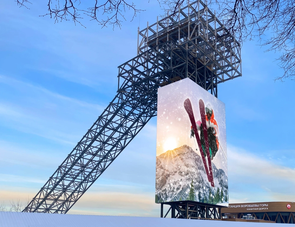 LG установила инсталляцию площадью 708 кв.м. из 744 профессиональных светодиодных дисплеев. Она находится на Большом трамплине на «Воробьёвых горах» в Москве.