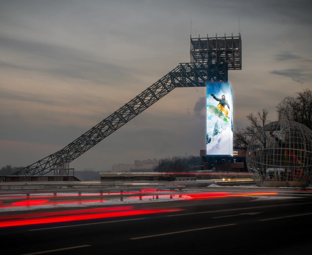 Решение от LG может использоваться в любой сезон и при любой освещённости. На экране будут транслировать и прыжки с трамплина, сноубордические, лыжные и другие соревнования, и разнообразный рекламно-развлекательный контент. На угловых конструкциях никаких искажений картинки не будет за счёт бесшовного дисплея с изгибом 90 градусов.
