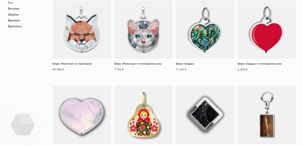 Что касается цен, например, на сайте Artpayments шарм «Животные» из перламутра оценён в 49 990 рублей, силиконовый браслет — в 1440 рублей, а шарм «Матрёшка» — 7750 рублей.