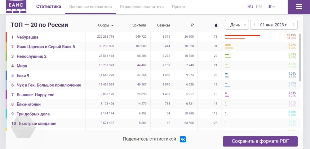 Это рекорд среди всех российских фильмов, выходивших 1 января.