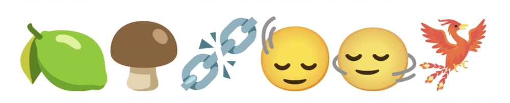 Релиз включает всего шесть новых эмодзи: лайм, неядовитый гриб, разорванная цепь, кивание и покачивание головы, феникс.