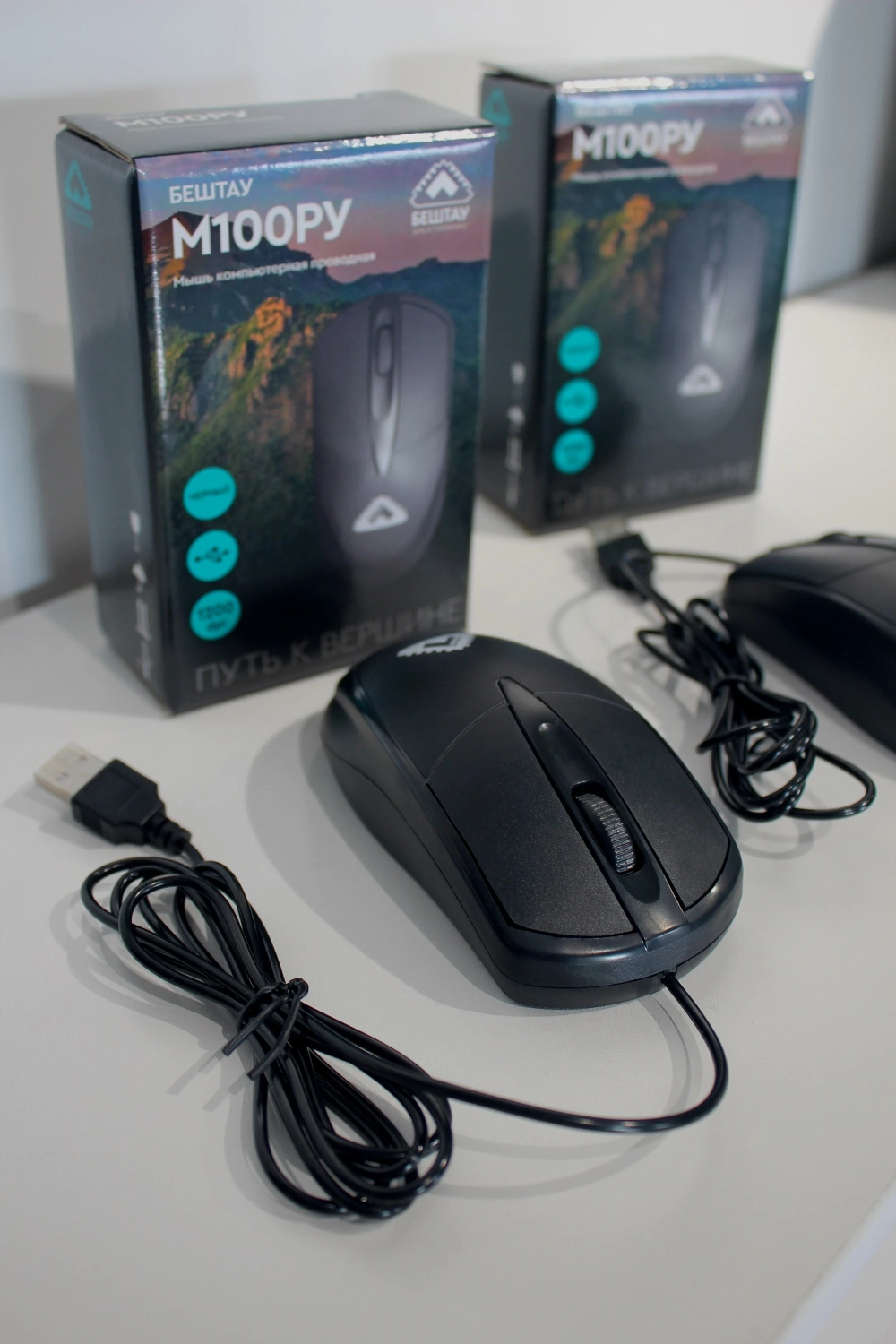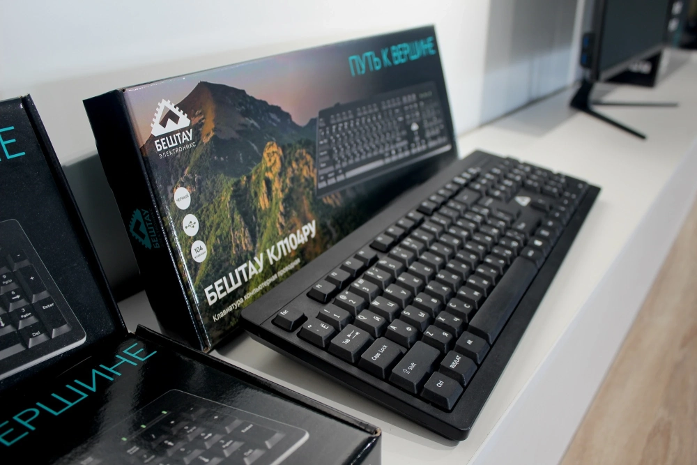 Ещё один продукт — мышка М100РУ. Устройство подключается по USB Type-A и имеет разрешение оптического сенсора от 800 до 1600 dpi. Также у компании в ассортименте имеется офисная клавиатура КЛ104РУ.