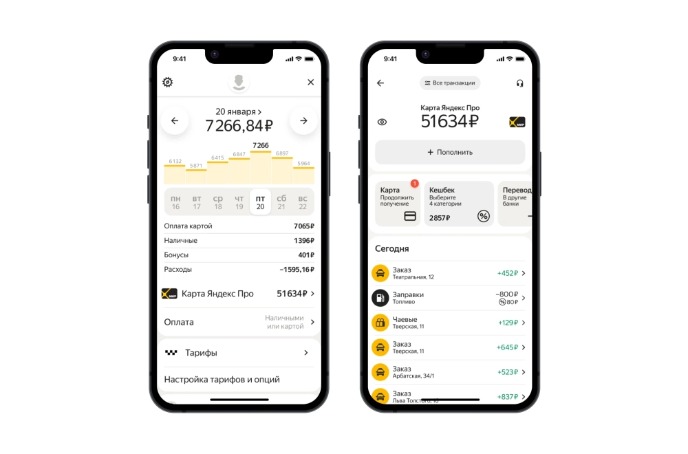Оформить карту можно в приложении «Яндекс Про», там же доступна информация о всех поступлениях и расходах. В дополнение к виртуальной карте, есть возможность получить физическую — пока её получится забрать в Центрах для водителей только в Москве и Санкт-Петербурге. В ближайшие недели её довезут до других городов России.