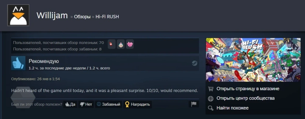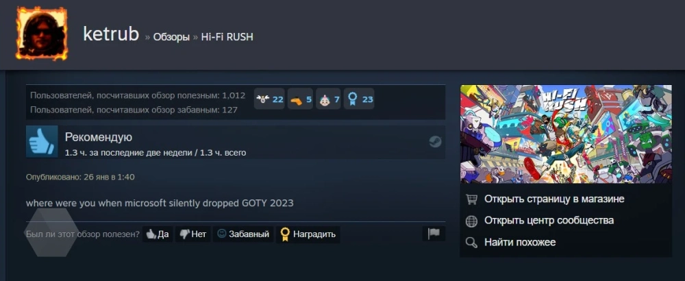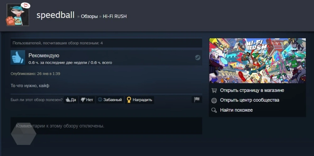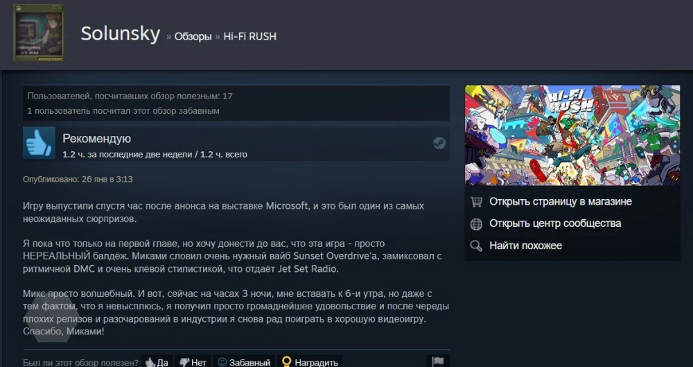 Есть у Hi-Fi Rush и негативные отзывы, но пока их только два и там нет никакой конкретики.