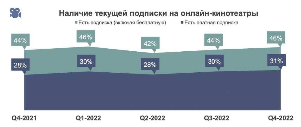 GfK: за четвёртый квартал 2022 года число подписчиков онлайн-кинотеатров растёт за счёт 16–24-летних горожан