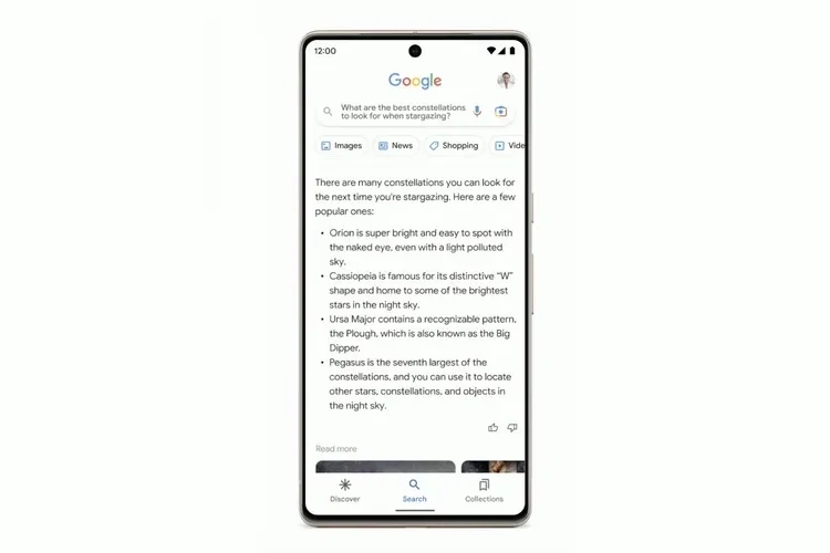 В своей демонстрации компания показала поиск по запросу «какие созвездия лучше всего искать во время наблюдения за звёздами?». На такой вопрос алгоритм Google дал сразу несколько ответов. В компании это называют NORA (No One Right Answer) или «Нет единого правильного ответа». Кроме того, ИИ вместе с ответами предлагает уточняющие вопросы, через которые пользователь может узнать ещё больше. Например, «В какое время года лучше всего видны эти созвездия».
