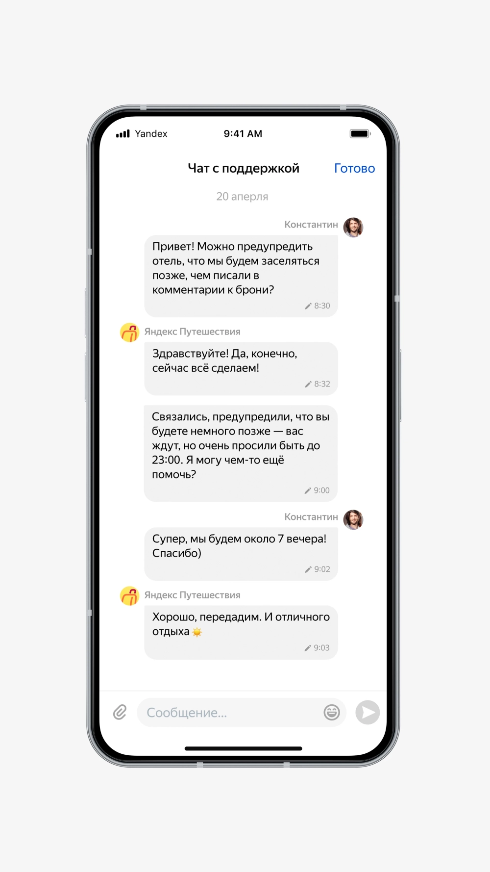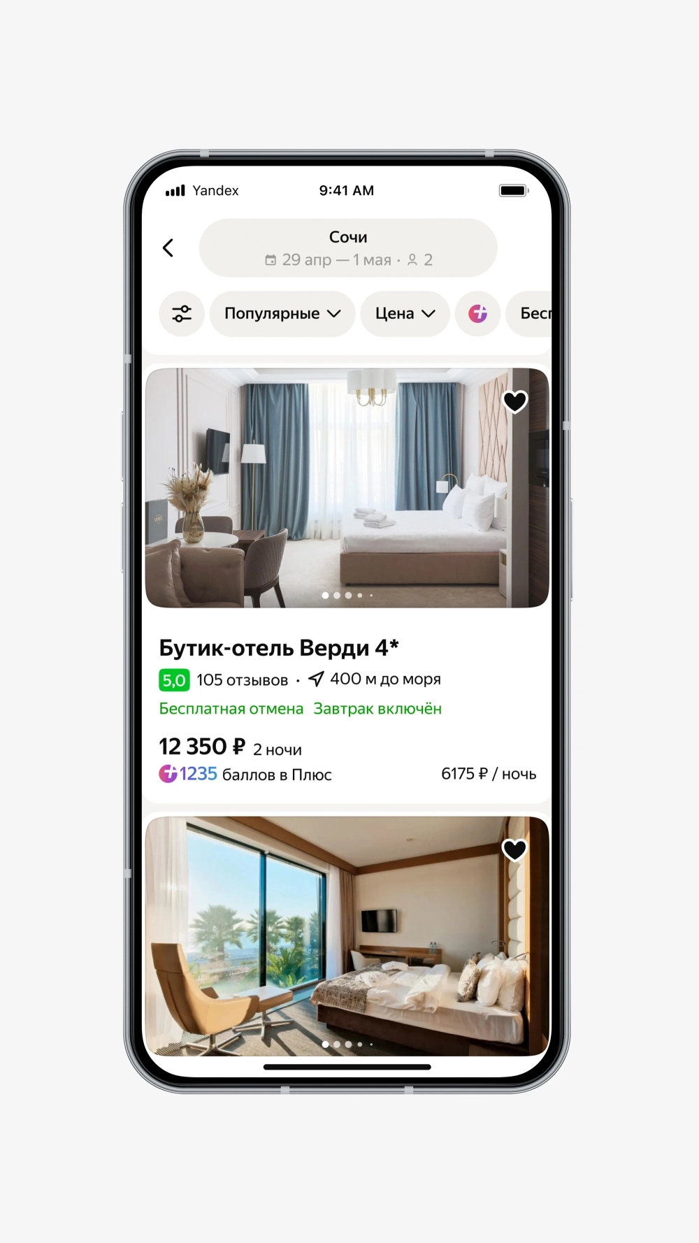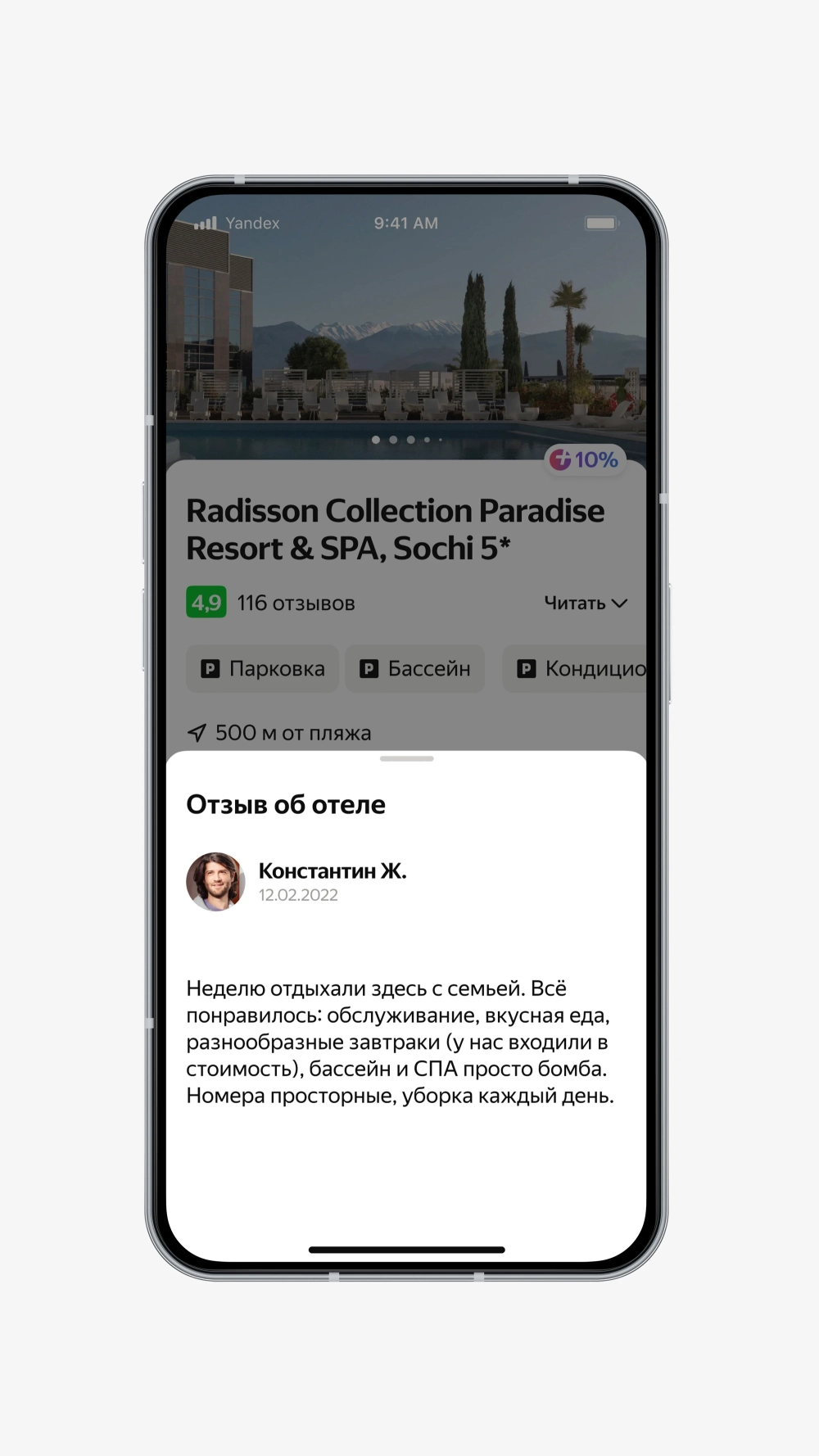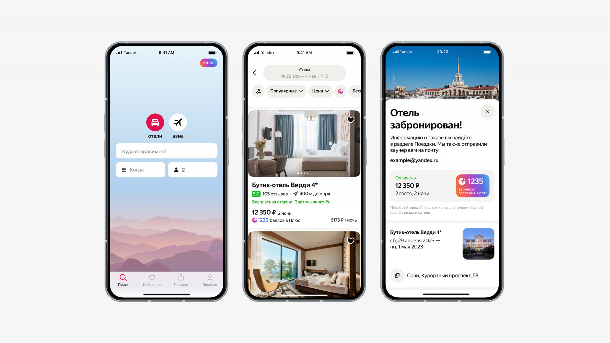 Приложение покажет наиболее выгодные цены на отели и авиабилеты. Если что-то пойдёт не так — есть круглосуточная поддержка в чате. Те, у кого есть подписка «Яндекс Плюс», получат кэшбэк до 10% баллами «Плюса» от общей суммы заказа.