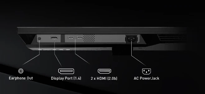 Подключить монитор к ПК или игровой консоли можно через HDMI 2.0 или DisplayPort 1.4. Регулировка доступна по наклону и высоте. Монитор также оснащён пассивной системой охлаждения, что не лучшим образом сказывается на толщине корпуса.