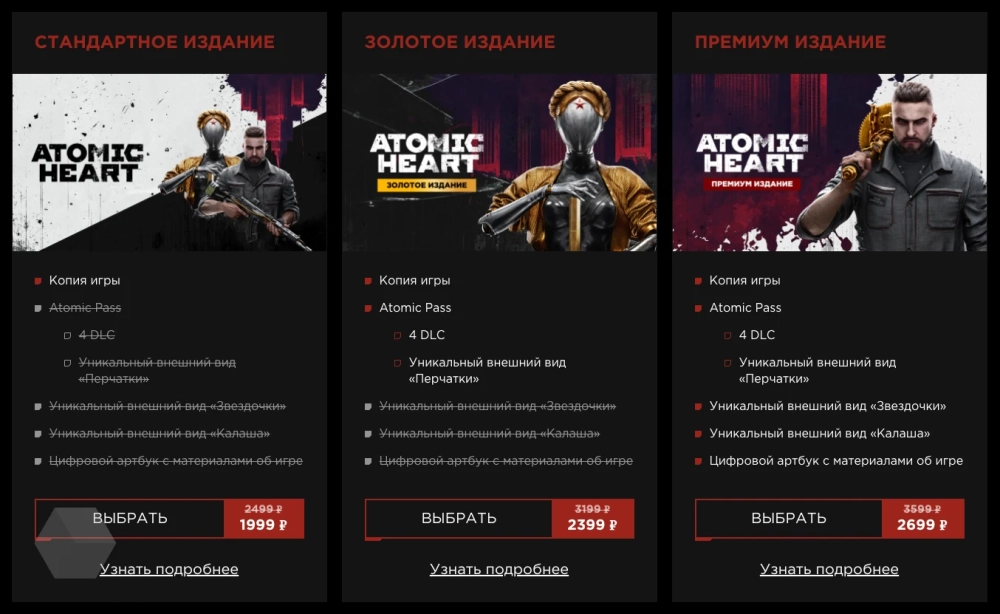 В Steam на разные издания Atomic Heart скидка составляет 20%, 25% и 25% соответственно. Стоимость игры для Xbox и PlayStation остаётся прежней.
