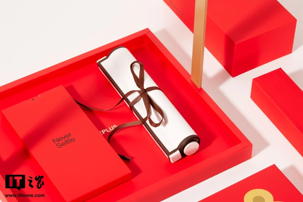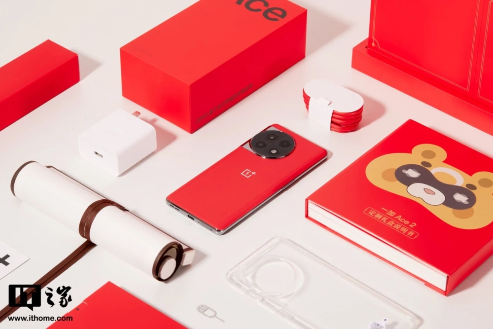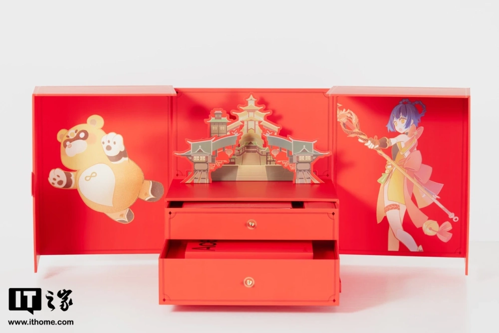Аппарат и тематические аксессуары поставляются в ярко-красной подарочной коробке. Смартфон получил красный задник с прострочкой и фирменную тему оформления для OC. Фотографиями телефона и комплекта поставки поделился портал It Home: