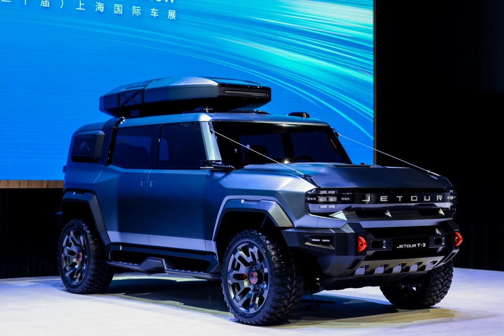 На выставке показали и концепт-кар Jetour T3 — это рамный внедорожник длиной 5,3 м, шириной 2 м, высотой 1,9 м и колёсной базой 3 м.