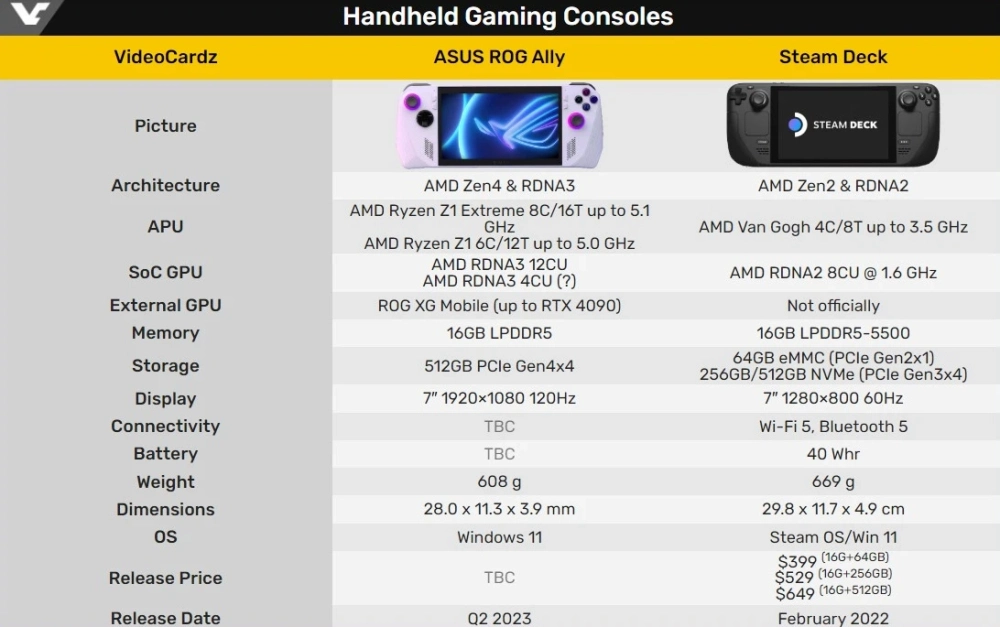 Одной из отличительных особенностей Steam Deck является наличие трекпадов, но Asus, судя по снимку с прототипами, даже не рассматривала такой вариант консоли. Также бросается в глаза, что дизайн релизной версии более «квадратный», а от чёрной расцветки, судя по всему, отказались:
