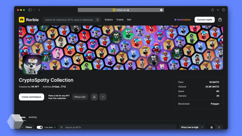 Коллекция CryptoSpotty заняла первое место на маркетплейсе Rarible по объёмам продаж за час.