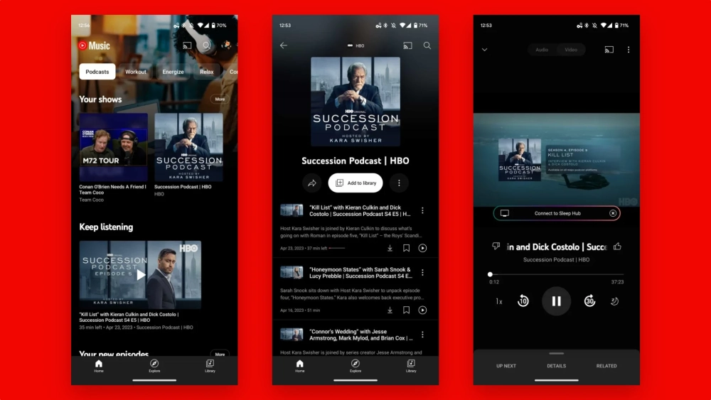 Все пользователи могут прослушивать шоу в офлайн-режиме и в фоне даже без подписки на YouTube Music Premium.