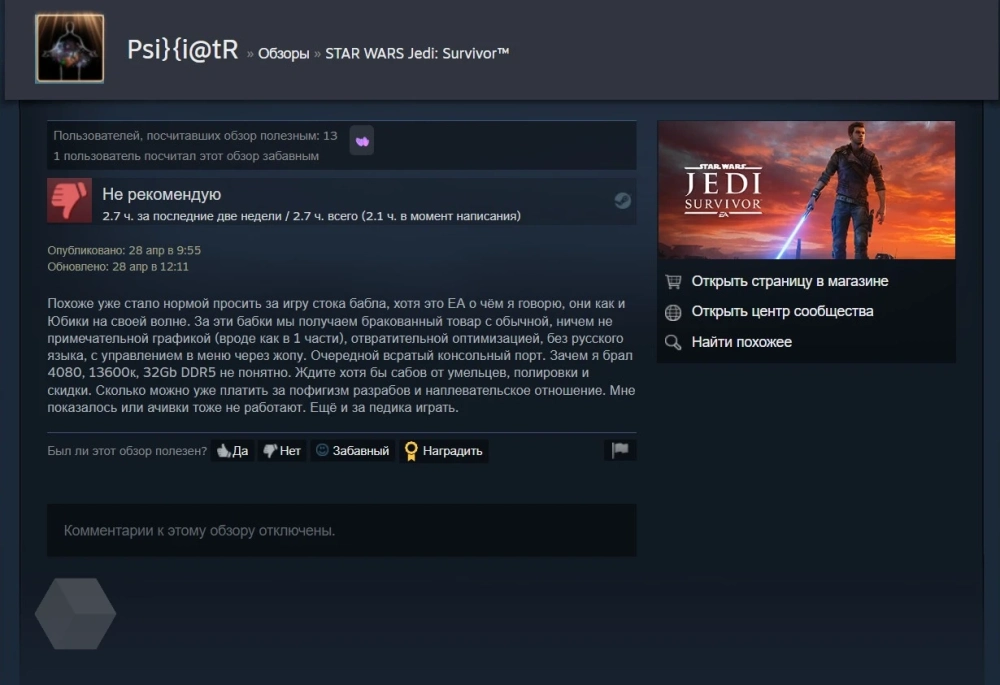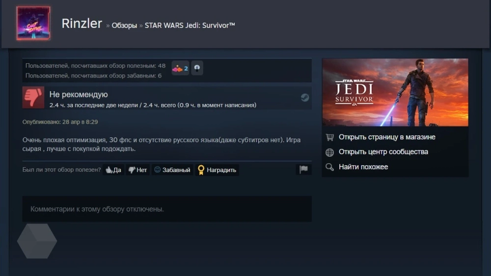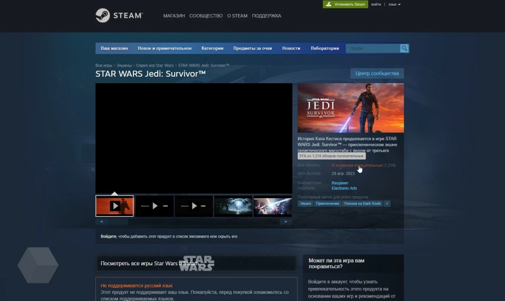 Русскоговорящие геймеры также остались недовольны тем, что Star Wars Jedi: Survivor не получила даже русских субтитров. Хотя это обычное явление для последних игр EA.