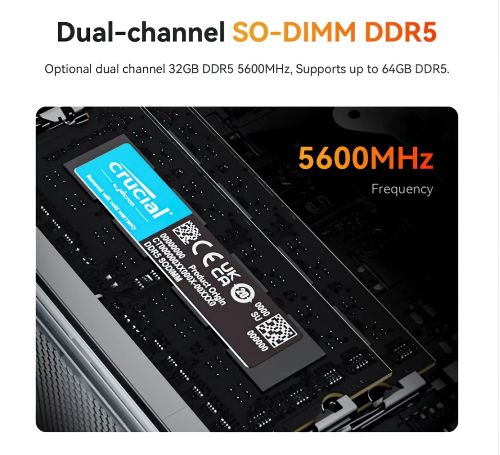 AMD Ryzen 9 7940HS и Ryzen 7 7840HS имеют 8 ядер, 16 потоков, базовую тактовую частоту 4,0/3,8 ГГц и достигают значений 5,2/5,1 ГГц. Есть встроенный графический процессор Radeon 780M (RDNA 3) с 12 вычислительными блоками, работающими на частоте до 2800 МГц. Чипы имеют TDP от 35 Вт до 54 Вт, но Beelink настроила их на работу в режиме 65 Вт.