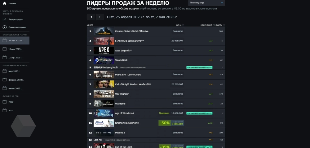 Чарт Steam с 25 апреля по 2 мая (топ 10):