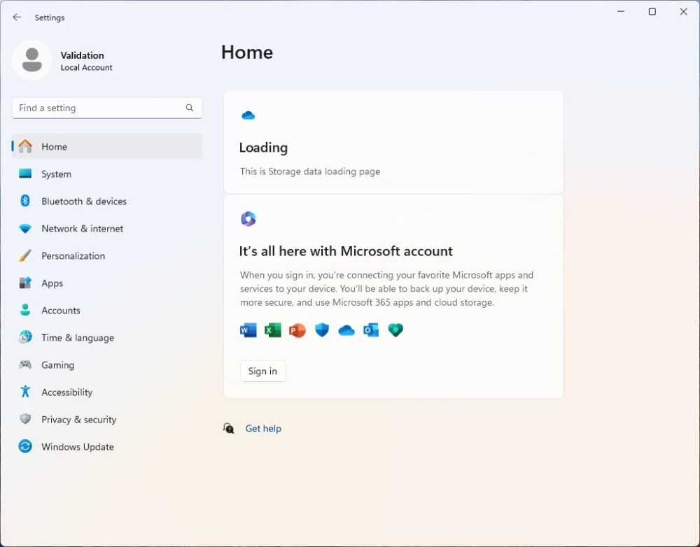 При открытии «Параметров» пользователя встретит новая домашняя страница с информацией о хранилище, советами по управлению учётной записью Microsoft и предложением попробовать триал-версию офисного пакета Microsoft 365. Есть несколько прототипов дизайна с различным расположением этих элементов.