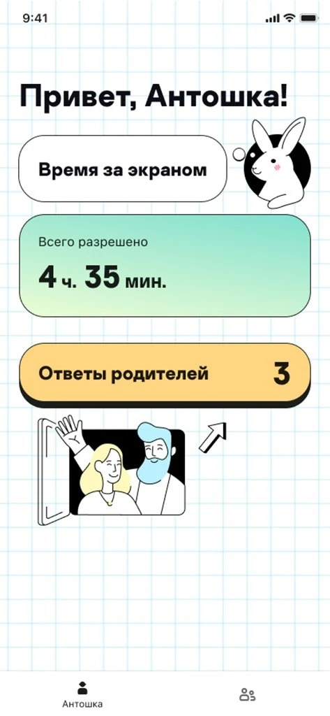 Приложение для детей обзавелось новым главным экраном, на котором отображаются правила родителей, в том числе ограничения на время и конкретные сайты.