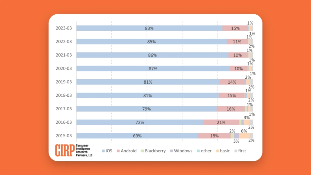 Аналитическая фирма CIRP выпустила отчёт о количестве перешедших с Android на iOS пользователях. Данные получены от респондентов из США.