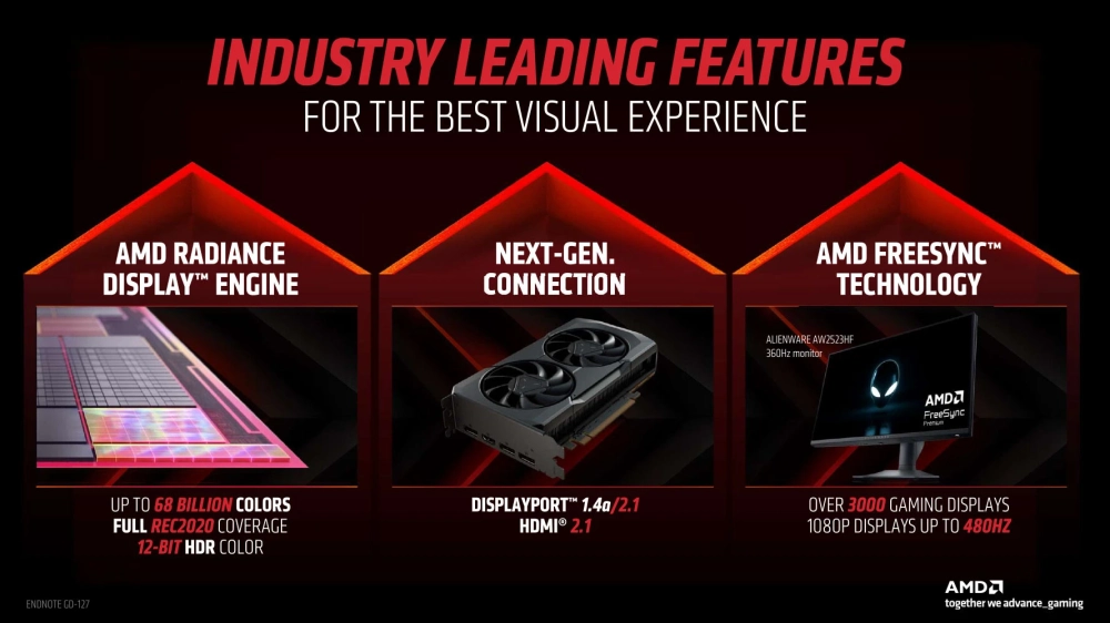 AMD сравнивает новый графический процессор с предшественником в лице Radeon RX 6600 (RDNA 2). Новая карта построена на базе чипа Navi 33 XL, и у неё больше ядер (2048 против 1792), более высокие тактовые частоты (GPU — до 2,66 ГГц, память — 18 Гбит/с) и есть поддержка кодировки AV1. Также новинка будет оснащаться портами DisplayPort 2.1.