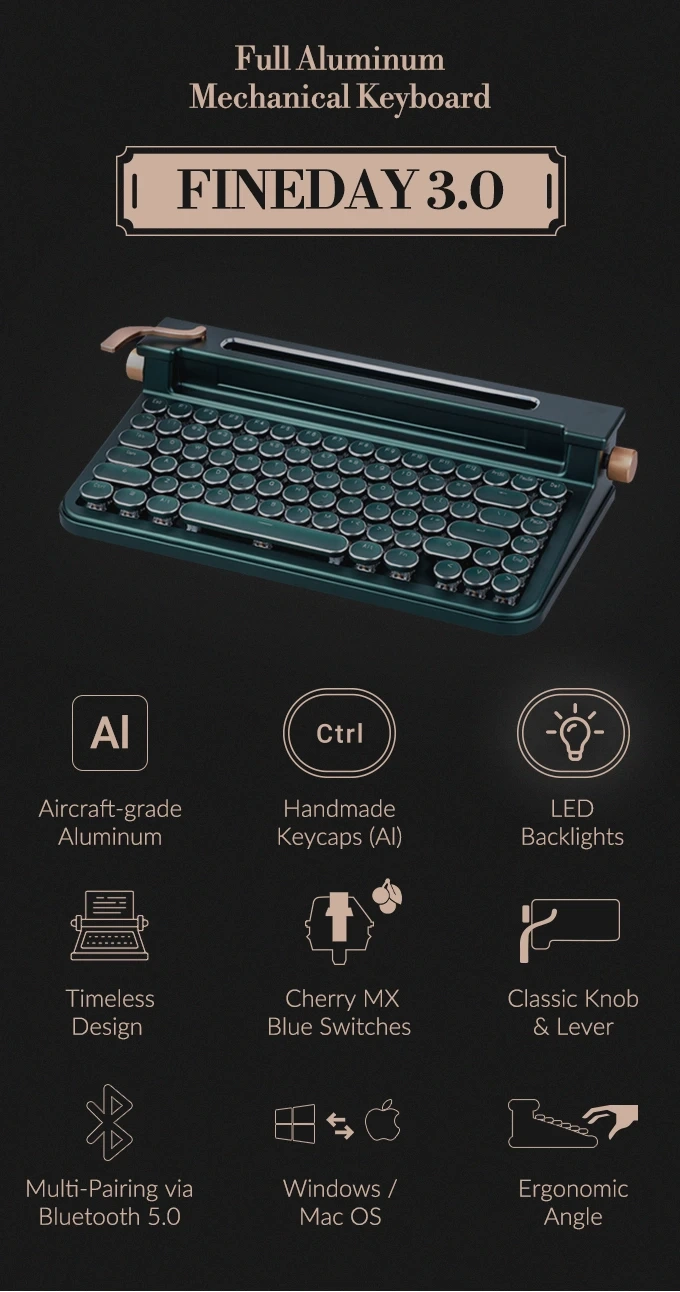 Вещь дня: беспроводная клавиатура Fineday 3.0 Aluminum Edition в виде печатной машинки