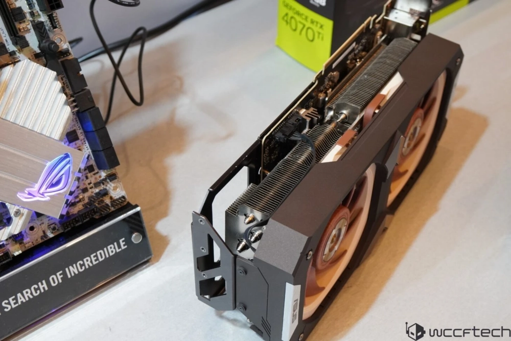 Карточка напоминает Asus x Noctua GeForce RTX 4080, но даже она выглядит тоньше, чем модель от PNY и Cooler Master.