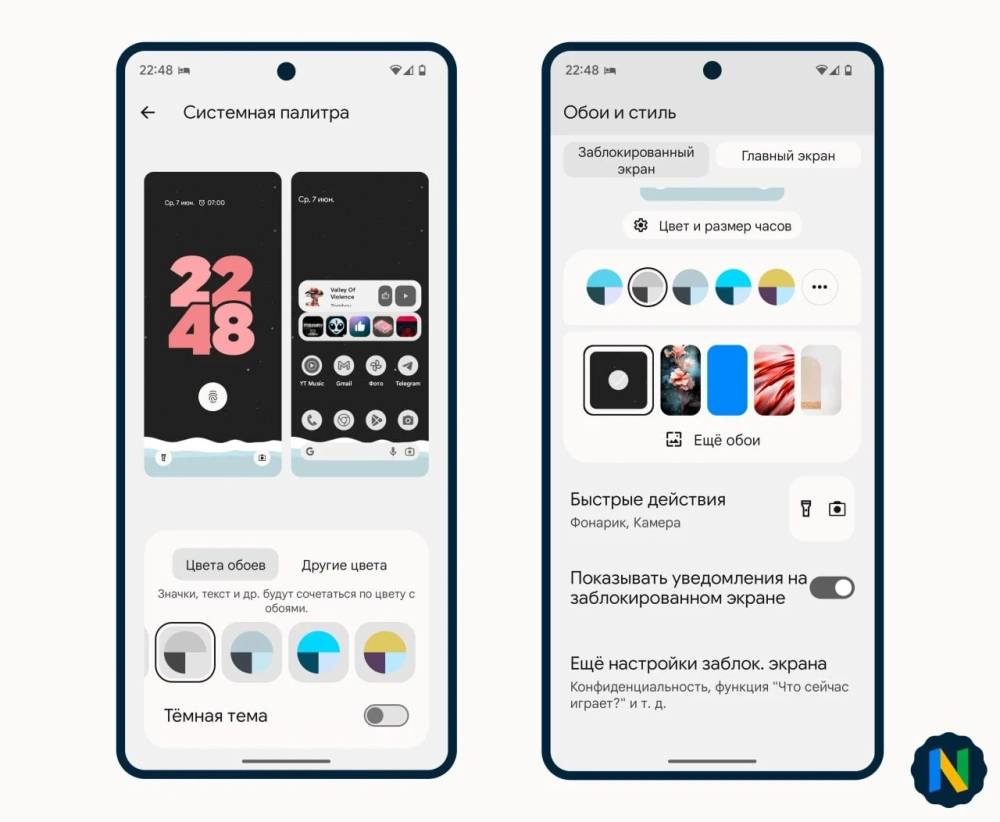 • переработанное приложение «Обои и стиль». Пользователь может выбрать девять вариантов дизайна часов для экрана блокировки, а также изменить ярлыки быстрого доступа;