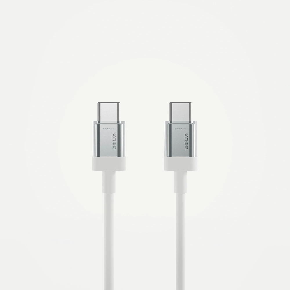 Кабель выполнен в белом цвете, а штекеры получили прозрачные элементы, чтобы подчеркнуть уникальный дизайн смартфонов Nothing.