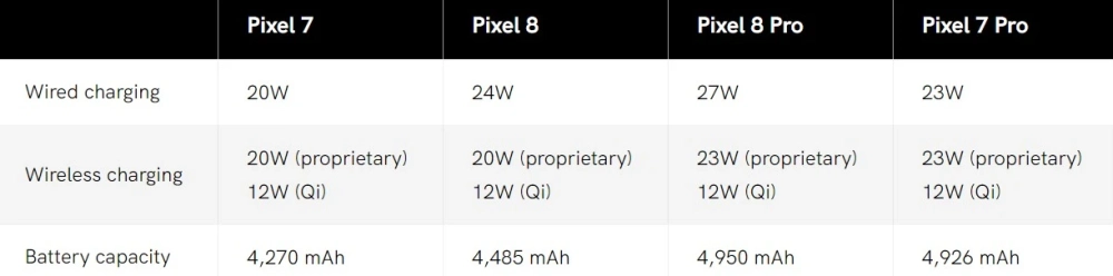 Утечка: информация о ёмкости батарей и скорости зарядки Google Pixel 8 и Pixel 8 Pro