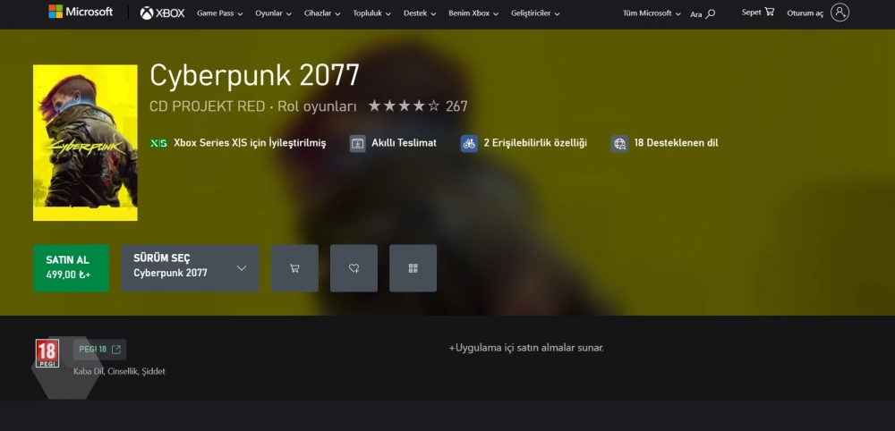 В турецком Xbox Store стоимость базовой версии Cyberpunk 2077 пока остаётся на прежнем уровне — 499 лир (~1700 рублей). Набор с Phantom Liberty продают за 1049 лир (~3600 рублей).
