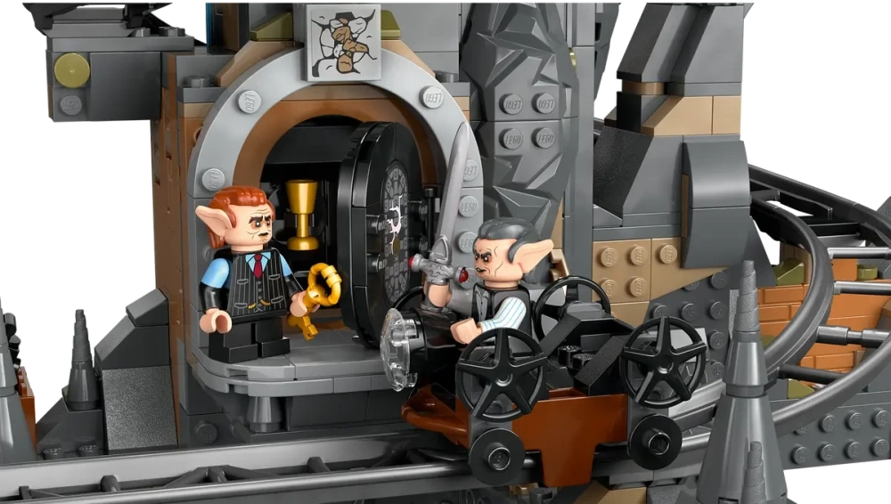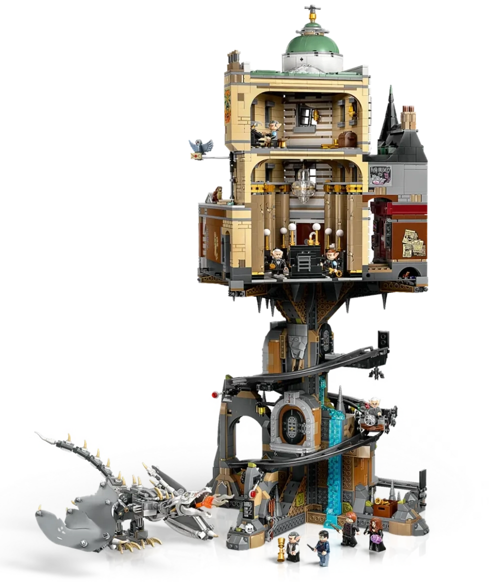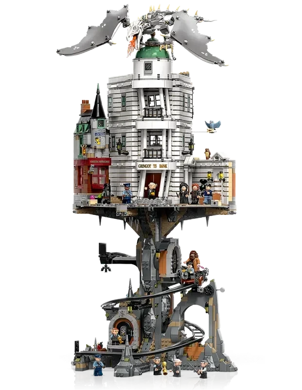 В комплекте 4803 детали. Из них можно собрать волшебный банк «Гринготтс», украинского железнобрюхого дракона и хранилище Лестрейнджей. Также в наборе 13 мини-фигурок и вагонетка, которая скользит по спиральной дорожке и останавливается у каждого хранилища. Общая высота собранной конструкции составляет более 75 см.