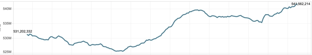 Он поделился графиком, который показывает, что на момент скриншота число ежемесячных пользователей X составило 541 562 214. До этого момента количество пользователей не поднималось выше 540 миллионов.