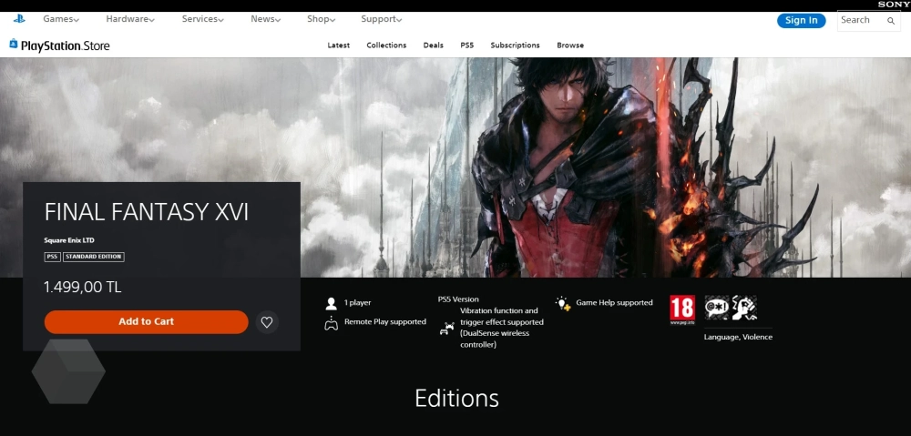 - Final Fantasy XVI — до 1499 лир (~5000 рублей) вместо 799 лир