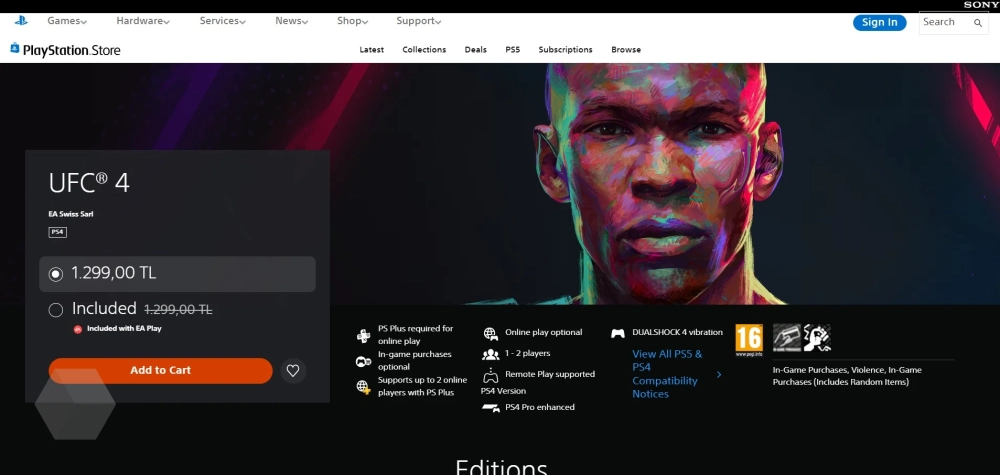 - UFC 4 — до 1299 лир (~4400 рублей) вместо 599 лир