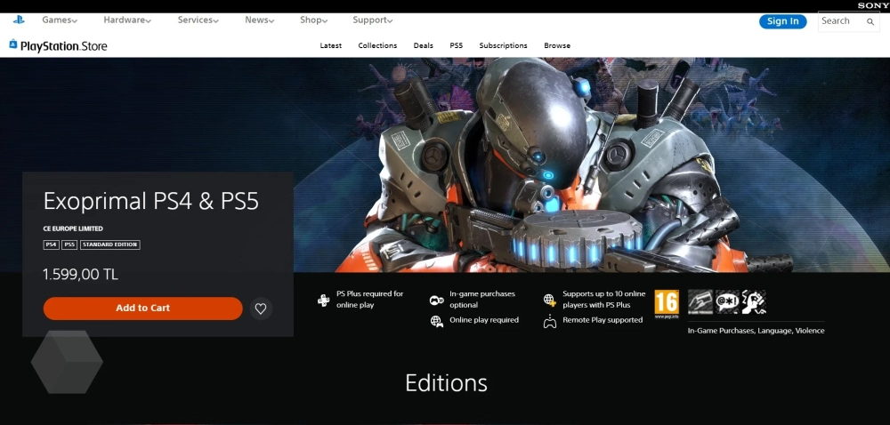 - Exoprimal — до 1599 лир (~5400 рублей) вместо 849 лир