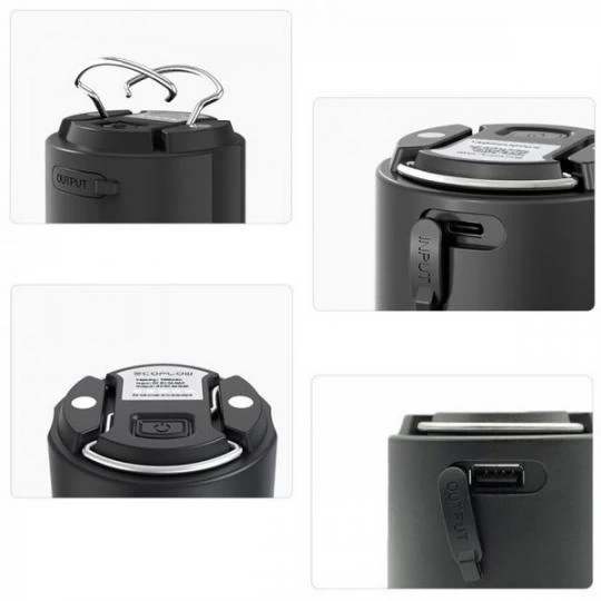 На корпусе лампы есть мощные магниты для крепления, например, к металлическим столбам. Зафиксировать лампу можно с помощью металлического крюка или поставить на стол. Корпус защищён от влаги и пыли по стандарту IP65 — девайс переживёт дождь, поскольку порт USB-C защищён силиконовой заглушкой.