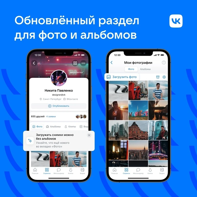 Раздел фотографий. Важные снимки теперь можно закрепить в разделе «Фото» — так их превью всегда будут видны на личной странице. А для ненужных кадров есть опция скрытия в архиве.