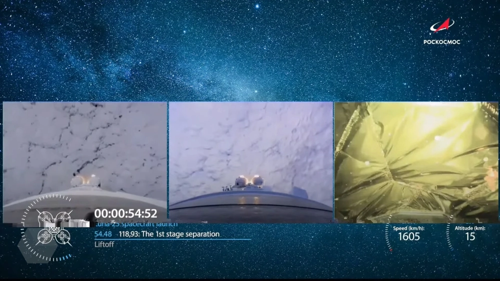 На высоте 100 километров ракета-носитель разогналась до 9000 км/ч и сбросила вторую и третью ступени. Около 02:23 по МСК «Луна-25» была успешно выведена на опорную орбиту.