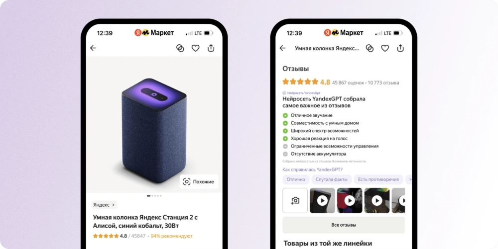 YandexGPT обобщит отзывы на товары в поиске «Яндекса» и «Яндекс Маркете»