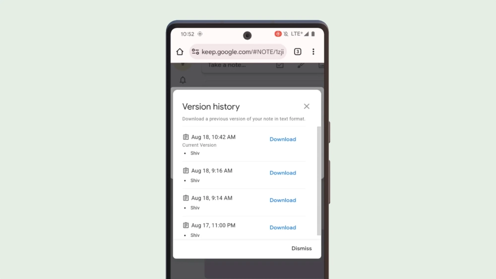 В то же время Android-исследователю под ником @AssembleDebug удалось запустить функцию истории правок в веб-версии Google Keep. Судя по видео, пользователь сможет просмотреть и скачать любую из предыдущих версий записи.