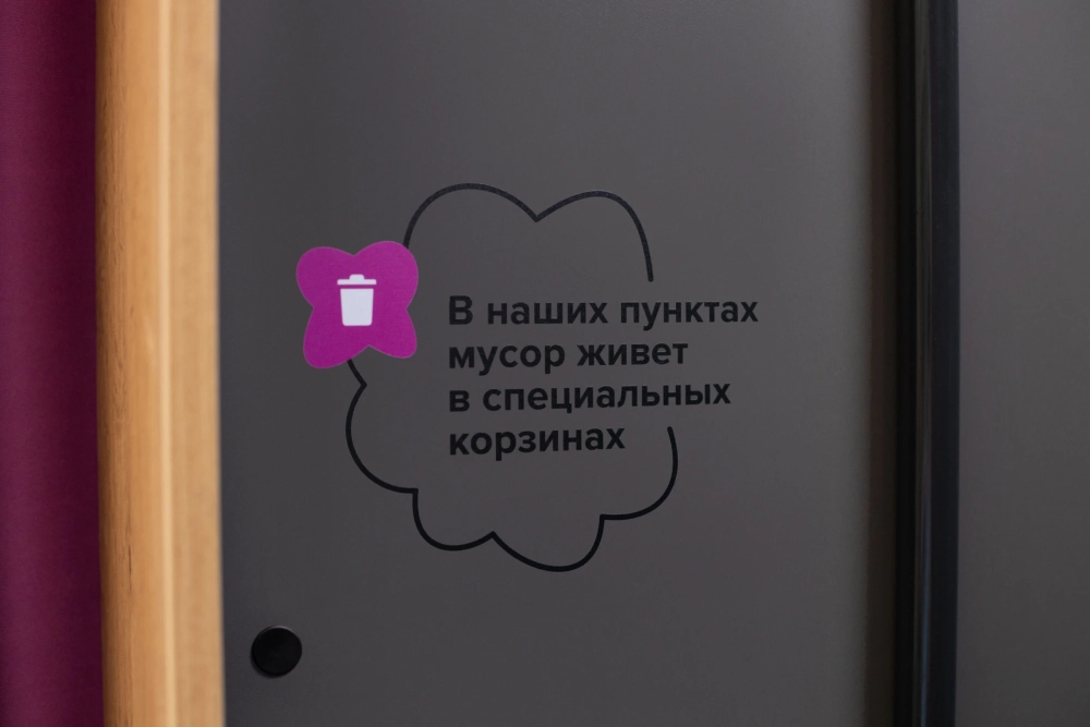 По задумке дизайнеров, в отделке помещений ПВЗ стоило бы использовать серые тона и светлое дерево в сочетании с мягкой подсветкой, а также яркие ягодные цвета, немного декоративной зелени и подвесной светильник из трубок на потолке.